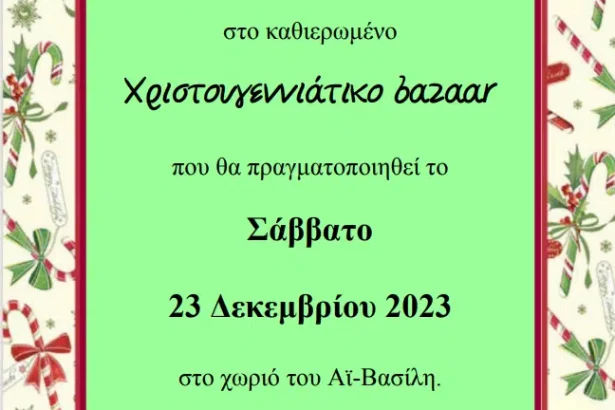 Το 2ο Γυμνάσιο Πρέβεζας σας προσκαλεί στο Χριστουγεννιάτικο Bazaar το Σάββατο 23 Δεκεμβρίου